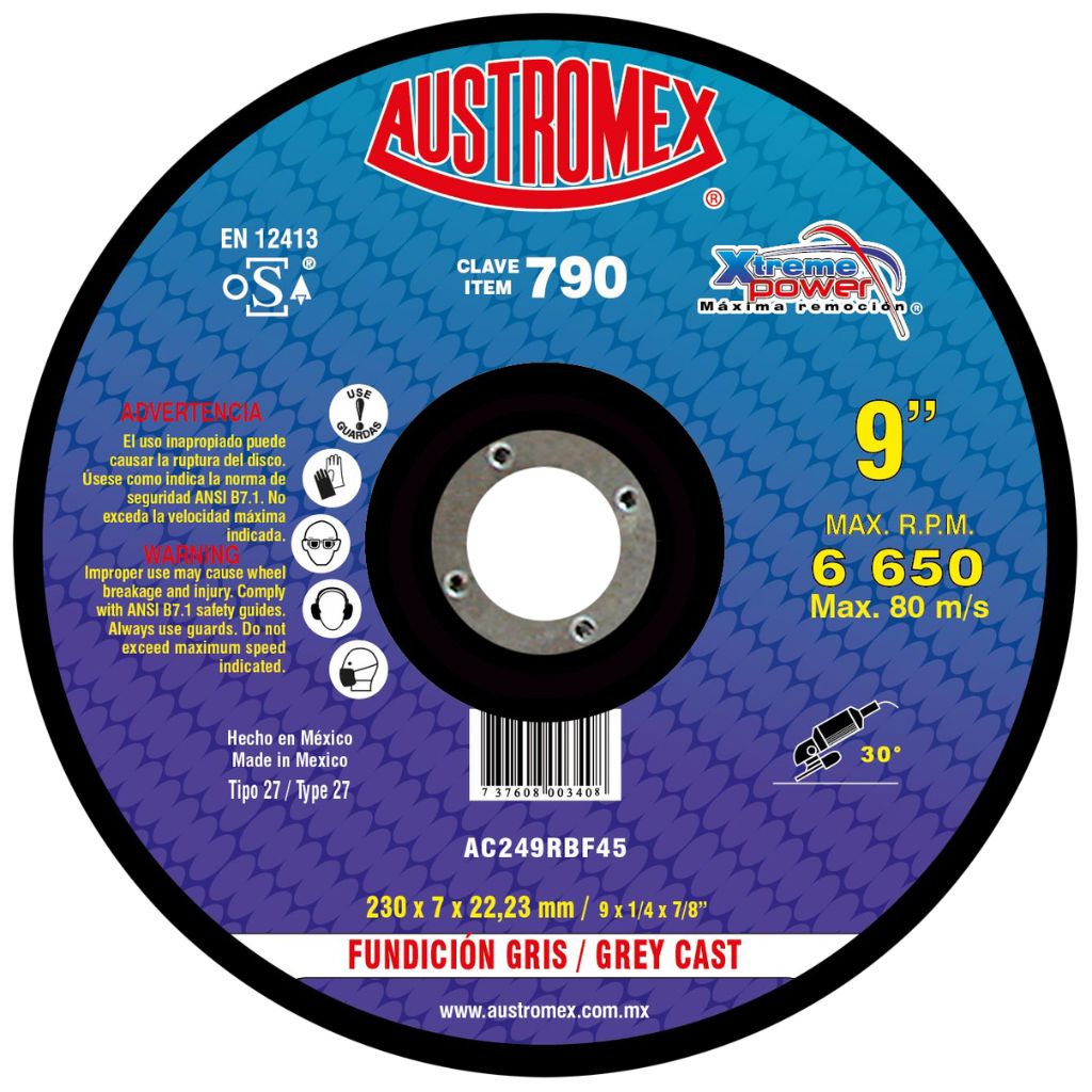 Con un diámetro de 230 mm, un espesor de 7.0 mm y un orificio central de 22.23 mm, este disco abrasivo es compatible con la mayoría de las esmeriladoras angulares de 9 pulgadas del mercado. Su diseño equilibrado reduce las vibraciones y proporciona mayor estabilidad, control y seguridad durante su uso.