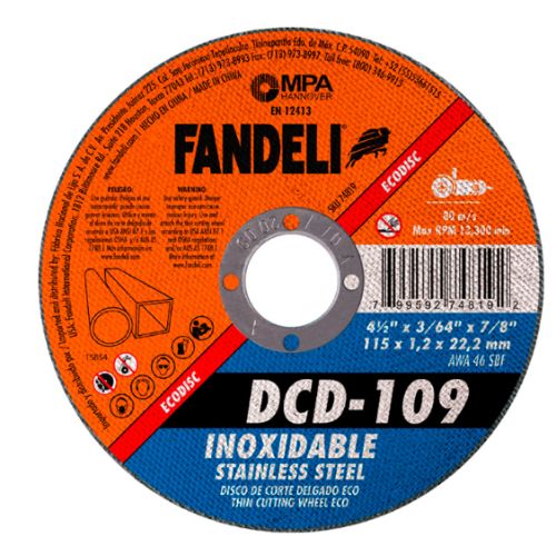 DISCO DE CORTE INOX 115 x 1,0 x 22,2 (ECODISC-DCD109)